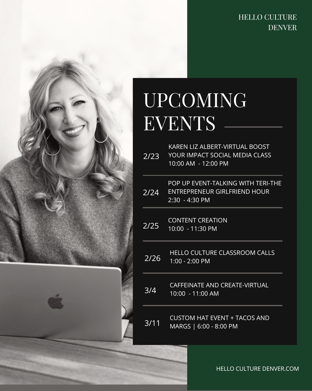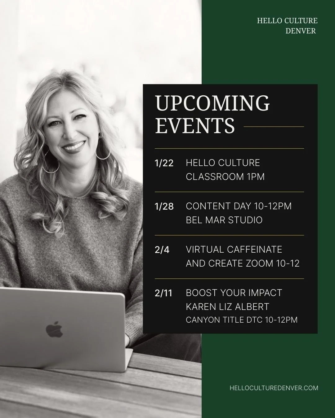 We’re excited to share what’s coming up at Hello Culture Denver and invite you to be part of our upcoming events designed to educate, inspire, and connect.